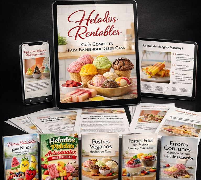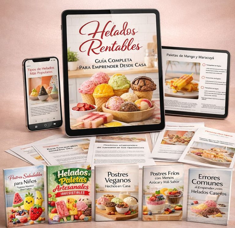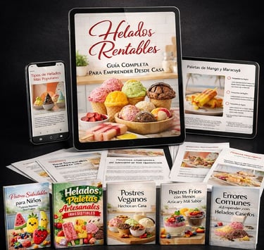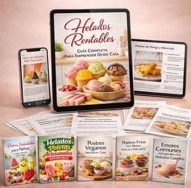 Este kit te enseñará a crear y vender helado artesanal desde casa, paso a paso. Descubre cómo empezar con recursos mínimos, organizar la producción, fijar precios y generar ingresos reales con un negocio sencillo y rentable.